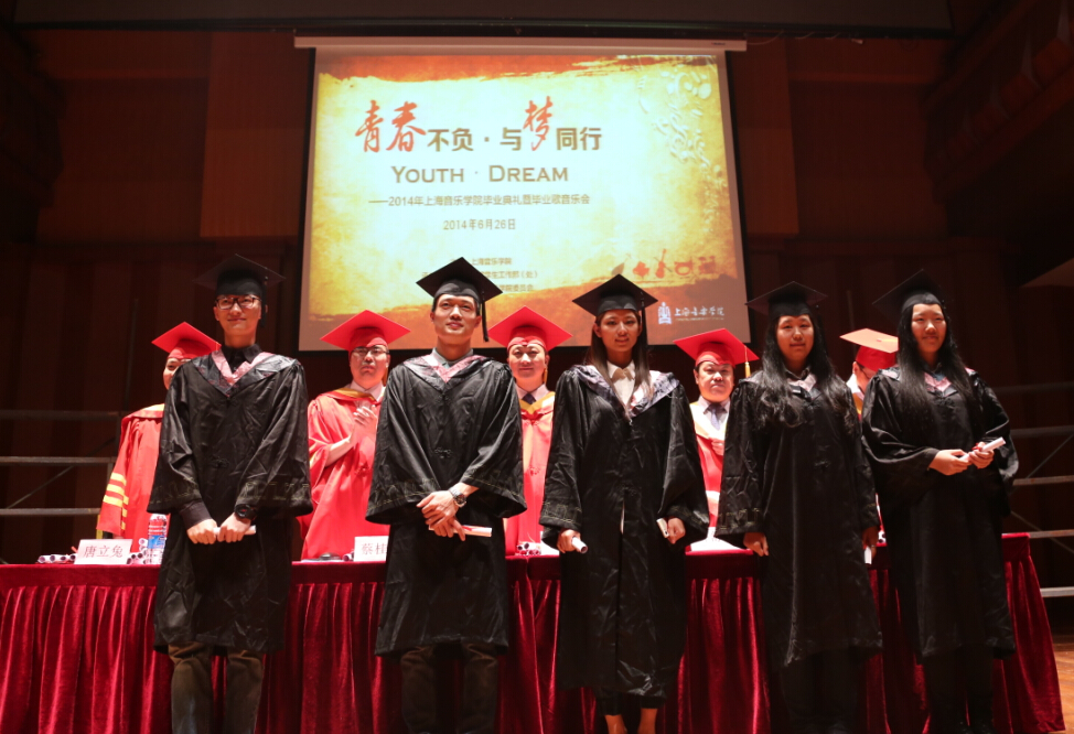 2014届毕业生代表、学生会主席段斐与大家分享了自己追求的音乐梦,代表全体毕业生感谢母校的培养,感谢老师们的付出,并表示将在上音的美好记忆永藏心间,并誓言“以青春之我,创青春之民族、青春之中国”。