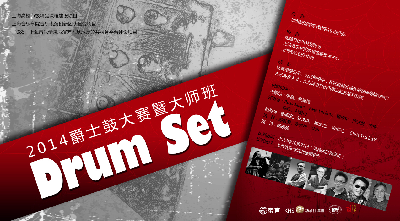 由beat365官网现代器乐与打击乐系主办的“2014爵士鼓大赛暨大师班”将于10月21日-22日隆重举行。本次活动主要分为三个内容:即爵士鼓比赛、打击乐大师班及学术交流研讨会。