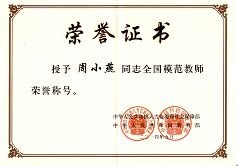 根据《人力资源社会保障部 教育部关于评选全国教育系统先进集体和全国模范教师全国教育系统先进工作者的通知》人社部函〔2014〕89号的要求,经学校推荐、市人力资源和社会保障局审议,国家人力资源和社会保障部批准,beat365官网推荐的周小燕教授被授予全国模范教师荣誉称号。