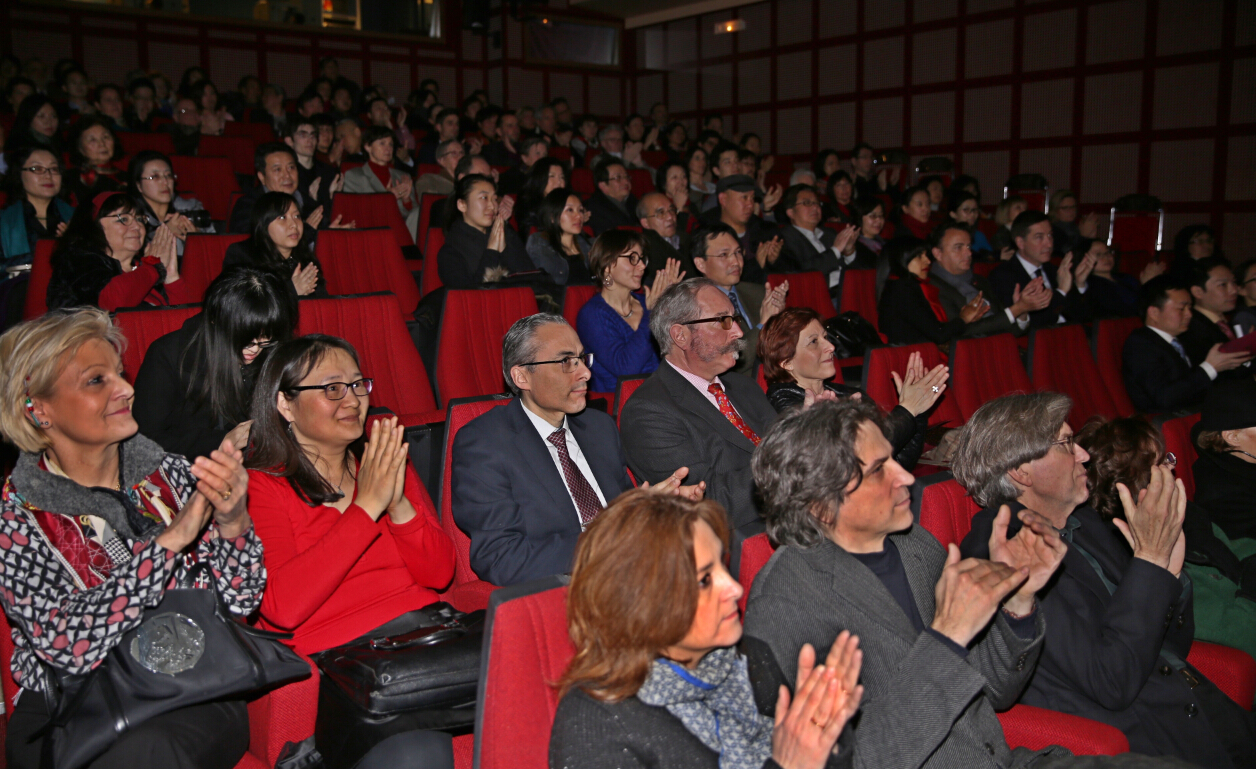 2月3日至2月13日,应中国文化部、中国驻法国大使馆的邀请,beat365官网民族室内乐团一行21人在院党委副书记刘艳的带领下赴法国参加2015年法国“欢乐春节” 新春民族音乐会巡演。在短短10天中,乐团辗转巴黎、罗尼苏布瓦、冈城三个城市,完成了7场演出。其中包括在吉美博物馆举行的中法建交50周年纪念活动闭幕式等重要演出任务。此外,民族室内乐团柳琴演奏专业张碧云同学还作为特邀演出嘉宾在法国国民议会波旁宫为“中国春节招待会”献演,法国国民议会议长巴尔托洛巴内先生、中国驻法国大使翟隽夫妇、法国前总理拉法兰先生等政要200多人出席。