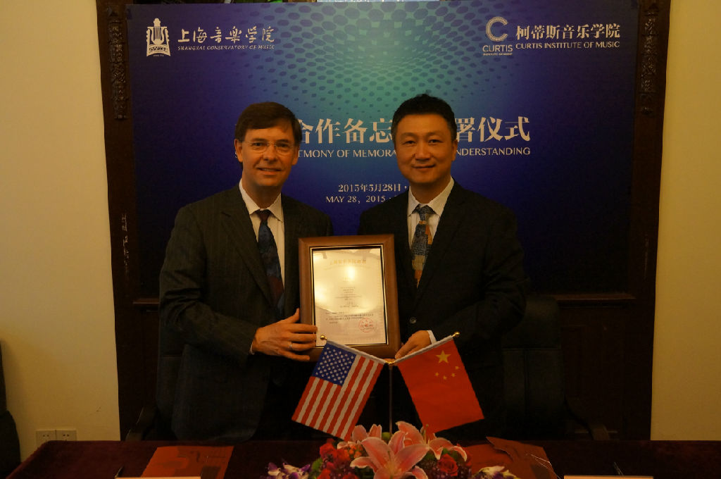 5月28日,林在勇院长与美国柯蒂斯音乐学院院长罗伯托·迪亚兹教授在beat365官网老行政楼103会客室签订两校交流合作备忘录。副院长张显平出席签署仪式。
