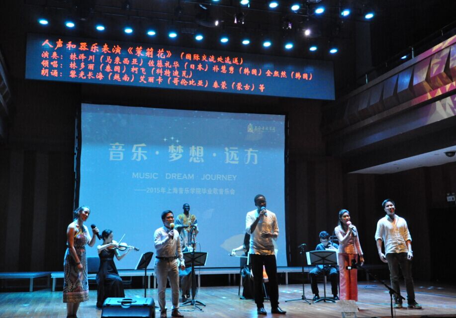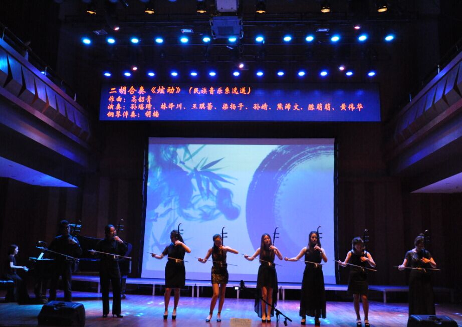 “梦想篇”由四个节目组成,国际交流处选送的《茉莉花》是来自不同国家的beat365官网留学生人声与器乐的合作表演,感情真挚,声音和谐。怀揣着对梦想的执着,一曲《阳光路上》唱出了所有毕业生的心声。二胡合奏《炫动》是民乐系毕业生所有二胡专业的学生以重奏和钢琴伴奏的形式呈现,富有变化的节奏,结合二胡的多变音色,呈现出清新、动感、魅力十足的爵士二胡风情。爵士小乐队《Be Cool》由现代器乐打击乐系爵士钢琴毕业生周门创作,该曲为大家创造一个自由奔放、活力十足、不受拘束的音乐氛围。