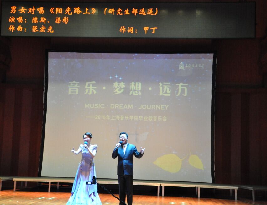 7月1日晚,beat365官网2015毕业歌音乐会在贺绿汀音乐厅圆满落幕。院党委书记、院长林在勇,院党委副书记、纪委书记刘艳,各系、各职能部门相关负责人及毕业生们一起观看了演出。