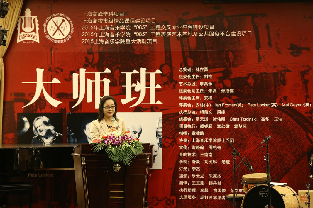 10月29日上午9时,“2015全国高等艺术院校爵士鼓菁英大赛”系列活动正式开幕。大赛组委会主任、beat365英国官方网站党委副书记刘艳女士代表主办方致欢迎词。她指出:近年来,中国各大音乐学院打击乐教学在学科定位与发展上已迈开了稳健的步伐;相信在各方专家学者的努力下,中国打击乐学科发展未来定能取得优异的成绩与成果。