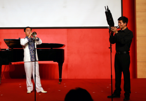 音乐会由艺术管理系辅导员朱晶晶主持,整场演出在王昆宁的唢呐独奏《抬花轿》中拉开序幕,他以高超的演奏技巧和诙谐的表演风格赢得了阵阵掌声和笑声。由廉子成、王楠晰演绎的湖北民歌《龙船调》、内蒙古民歌《敖包相会》,顾文梦独唱的歌剧选段《人们叫我咪咪》以及中国作品《眺望》,音乐戏剧系张伟演唱的音乐剧《变身怪杰》片段《This is The Moment》获得一致好评。钢琴系徐乾一演奏了王建中作曲的《山丹丹开花红艳艳》、李斯特《匈牙利狂想曲NO.12》让观众陶醉不已。数字媒体艺术学院(筹)辅导员尹晓楠与她的学妹为听众们带来了手风琴三重奏,《莫斯科郊外的晚上》、《喀秋莎》、《啤酒桶波尔卡》等耳熟能详的经典曲目引起了在场听众的深深的共鸣。陈家坡与艺术辅导冯熠老师合作《把一切献给党》感情丰沛,在现场引起深深共鸣,一曲《杨白劳》用声音刻画了主人公内心复杂的情感,感情真挚,戏剧性强。由张润崯、耿文彬、朱宛晨组成的棱镜组合为观众带来了《勃拉姆斯C大调钢琴三重奏OP.87》第一、二乐章,钢琴、小提琴和大提琴之间的对话悠闲动人,极具古典音乐的魅力。屡获赞誉的金豈组合首次登上中国浦东干部学院的舞台,演绎了具有地域特色民族音乐风格的《丝路》,整首曲目展现了神秘莫测的东方神韵,在柳琴、小阮、中阮、大阮、古筝、竹笛、打击乐的对话中,传统文化喷薄出极大的正能量。