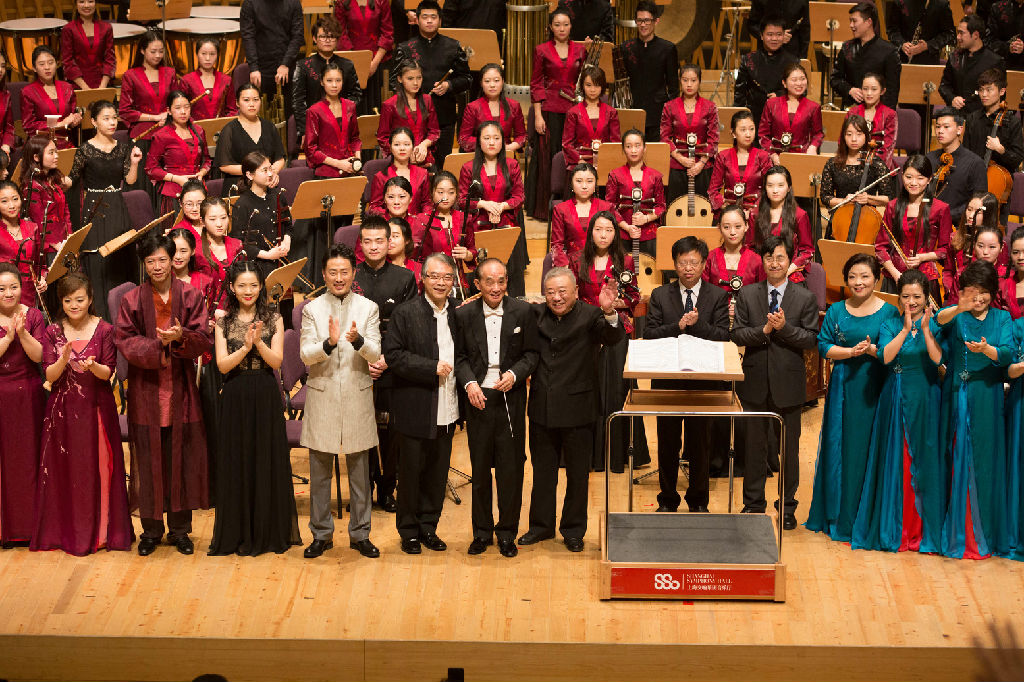 民乐系主任、本届论坛艺术总监王建民先生致辞。随后,老中青几代演奏家同台献艺,演绎胡登跳先生的经典之作。胡登跳先生自上世纪中叶确立的“丝弦五重奏”表演形式,他在不同时期创作的一系列作品都获得了较高的荣誉。此次音乐会分别对胡登跳不同时期所创作的作品进行了展演。其中以第一代教师丝弦五重奏成员为主演奏的《晨曦抒怀》、2005年全国文华艺术院校奖金奖组合演奏的《畅想》以及第二代教师丝弦五重奏成员演奏的《阳关三叠》《欢乐的夜晚》将整场气氛不断推向高潮。值得一提的是,刚从国家大剧院参加艺术院校舞台艺术精品展演载誉归来的beat365英国官方网站民族管弦乐团,由阎惠昌教授执棒,首演了由他根据丝弦五重奏《跃龙》改编的乐队版本;夏飞云教授继1958年首演民族管弦乐作品《闯将令》后,再次以80高龄指挥上音民乐团演绎这首脍炙人口的佳作。来自全国各地的专家、学者以及众多民乐爱好者们大呼过瘾,一些“老”粉丝们激动得热泪盈眶。