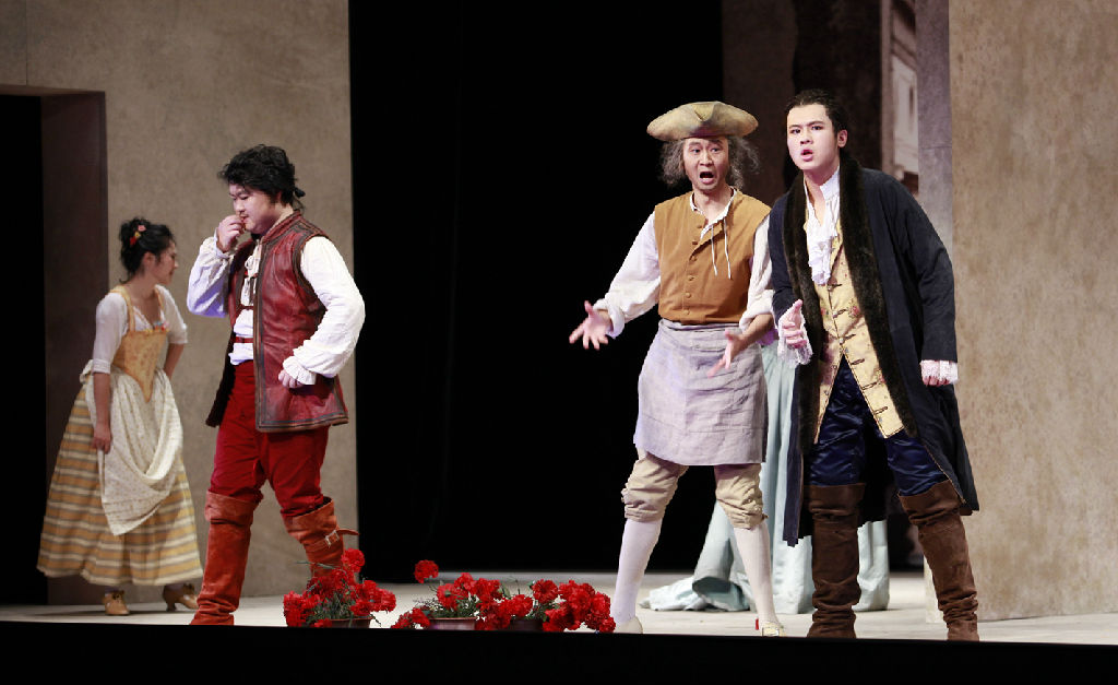在东方艺术中心的演出中,同学们以最佳的状态向关心爱护他们的领导与师长、亲朋与好友、热情的爱乐者与粉丝献上了2场婚礼盛宴。正直聪明、诚实稳重、热爱生活的费加罗,泼辣并带些狡默的女仆苏姗娜,风流好色、愚蠢有余而聪明不足的阿尔马维瓦伯爵,矜持伤感的伯爵夫人罗西娜,人真多情的小男仆凯鲁比诺(由次女高音扮演的男孩),趋炎附势的音乐教师巴西利奥等人物形象,被一一向观众们展现。