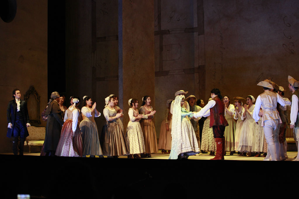 今年上半年,上音声乐歌剧系接到与日本昭和音乐大学合作排演歌剧《费加罗的婚礼》的任务后,成立《费加罗的婚礼》剧组,并挑选好角色演员。师生们放弃了暑假休息时间,在一起集中培训。先后接受了意大利语正音指导保罗·贝尔纳迪教授和意大利声乐指导翁贝特·菲纳兹教授的集中授课和指导。9月8日,新学期伊始,《费加罗的婚礼》剧组一行13名师生飞抵日本,入驻昭和音乐大学,汇同意大利导演马尔克·甘迪尼先生以及日本演职员一起开始了为期一个月的交流、排演歌剧的活动。