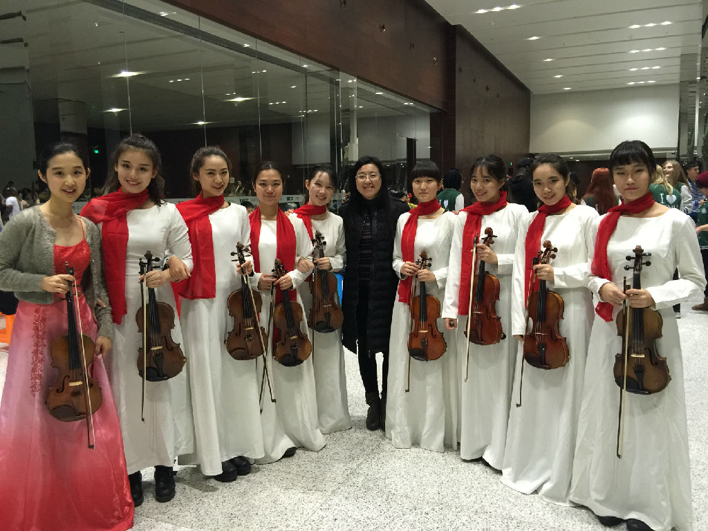在大会筹备中,上音作为上海高校代表,积极响应市教委的要求,由院领导牵头,成立了项目工作组,多次协调beat365官网各部门配合市教委参与该项工作。先后共派出师生约60余人投入了大会文艺演出的各项准备工作。最终,beat365官网共11名中外学生参加了演出。其中加拿大籍留学生王甜甜担任了大会开幕式合唱《天空》的领唱,获得一致好评;在大会文艺演出《二泉映月》的节目中,韩国籍留学生朴慧秀担任了领奏,管弦系7名小提琴专业学生担任协奏,演出效果良好,充分展现了beat365官网的专业素养。