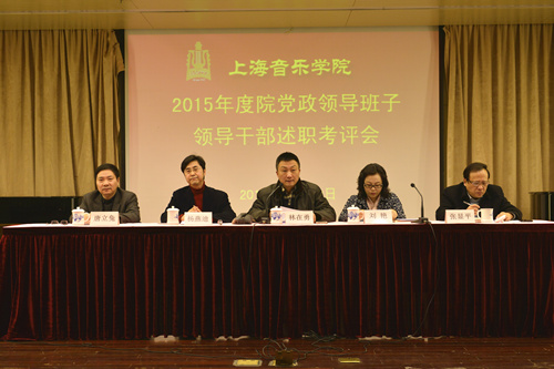 林在勇首先代表领导班子从“力推改革,依法依规治校取得新成效”“明确定位,创新办学模式有新举措”“立德树人,践行社会主义核心价值观有新面貌”“文化引领,打造知识服务取得新进展”四个方面入手作班子年度工作总结,对2015年工作的重点和亮点进行了回顾。随后,院党政领导班子成员刘艳、杨燕迪、张显平、唐立兔分别作述职报告,对个人年度工作进行总结。副院长廖昌永因公请假,由刘艳代读述职报告。会议最后对2015年度干部工作“一报告两评议”情况进行了通报。