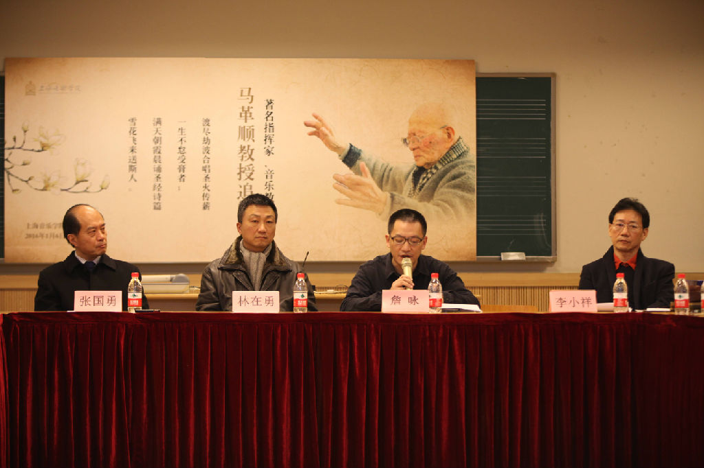 当日下午,“马革顺教授追思会”在北楼216教室举行。院党委书记、院长林在勇、九三学社市委宣传部部长詹咏、中国合唱协会常务副理事长李小祥、马革顺先生的弟子代表、亲属代表及生前好友分别发表讲话,从不同角度回忆了马先生的一生,表达对先生真挚的怀念。