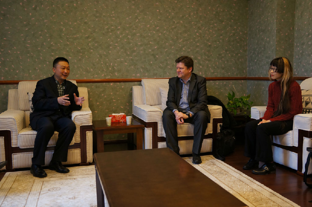 亚瑟先生介绍了TROMP国际打击乐比赛的历史和赛制,并就在中国进行赛事推广的相关事宜与林院长等进行了探讨,并拟邀请杨茹文教授担任下一届比赛的评委。林在勇提出,当代音乐的发展的不应仅局限于作曲领域,而关乎学校的整体大发展,我们应该处理好传统与现代的关系,在创作、表演学科的建设中注入现代音乐的理念。