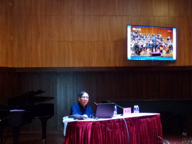 整场讲座分为两个部分,第一部分主讲“人写 写人 为人写——谈音乐创作”。鲍元恺教授以风趣幽默的语言分享了他多年积累的丰富的音乐创作经验,配合生动的音视频,为我们展现了他音乐作品中“人写,写人,为人写”的创作原则,并强调了“以西方音乐形式展现中国传统音乐”作为重点的创作观念。