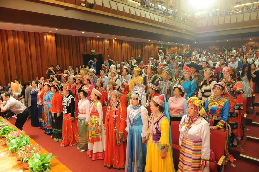 本次音乐会上还有一名特殊的少数民族学子——声歌系于丽红教授的学生、来自西藏的盲童德庆玉珍。2014年,在上音党委领导的关心下,学校为具有歌唱天赋的她免费提供为期五年的声乐进修,勉励她成为“新世纪的才旦卓玛”。如今小玉珍经过两年多的专业学习,进步很大,本场演出,她用天籁般的歌声和于老师同唱一曲《一个妈妈的女儿》。唱毕,小玉珍在舞台上吐露的纯真挚恳的心声,让旁边的于丽红老师偷偷抹泪。