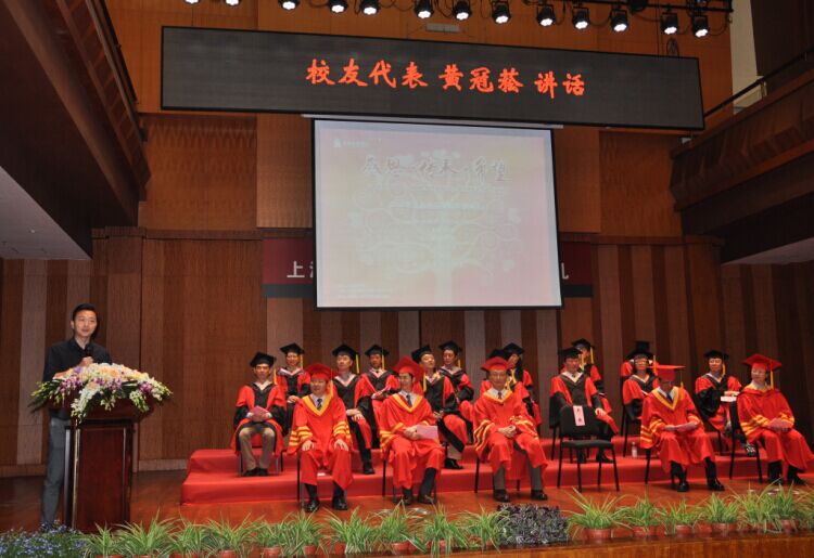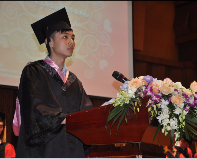 现代器乐打击乐系的陈玥见代表毕业生发言,他说,自己学习的古典管风琴专业是西方最古老的乐器,为了追求音乐梦想,远赴美国考学最终顺利地被朱莉亚音乐学院录取。作为上音人,他很骄傲在世界的舞台上展现自己的能力与天赋;作为孩子,感谢父母的辛苦付出;作为毕业生,感谢学校老师们的培养教育。