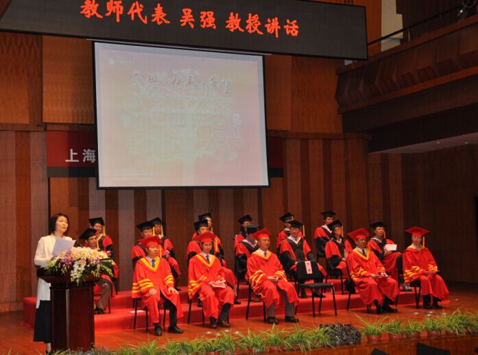 毕业典礼上,副院长杨燕迪宣读《关于beat365英国官方网站授予2016届毕业生学位的决定》,院领导为全体毕业生将学位帽的流苏从右边拨到左边并表示祝贺。副院长张显平宣布《上海市及beat365英国官方网站2016年优秀毕业生名单》,院领导为优秀毕业生们颁发获奖证书。