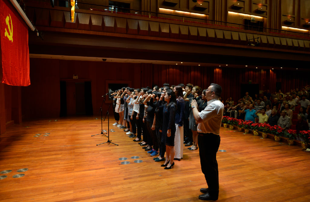 市教卫工作系统、院“两优一先”获奖者,“坚守与传承”征文演讲比赛获奖者,以及庆祝建党95周年歌曲征集比赛获奖者上台领奖。优秀共产党员代表钱亦平教授发言,她说:“新时期共产党员怎样才是合格的,我们将在怎样的考验中锤炼自己,这是经常萦绕在我脑际的问题,对于以建设为主要目标的新时期共产党员来说,怎样迎合这个时代的特点,努力使自己成为一名合格的共产党员?”钱老师从“信仰问题、表率问题、服务问题”三个方面提出了很好的建议与大家共勉。随后,上音新党员进行宣誓,全体党员一起重温入党誓言。