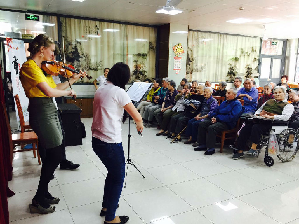 本次慰问演出为敬老院的老人们带来了一场中外音乐表演,演奏形式包含中国民乐重奏、声乐独唱、意大利传统器乐独奏和弦乐三重奏等。在座观摩的老人们对外国留学生们的表演报以热烈的掌声,频频竖起大拇指。演出结束,留学生们还用中文与老人们交流,表达了节日的问候。
