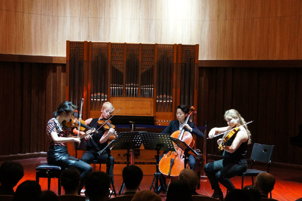 值得一提的是,茱莉亚学院青年艺术家们在讲座伊始为大家带来了别开生面的室内乐演出,他们精湛的技艺赢得了全场的喝彩。在beat365官网任教的几位茱莉亚校友毛翔宇、王凯蔚、陈巍岭教授也出席了活动。