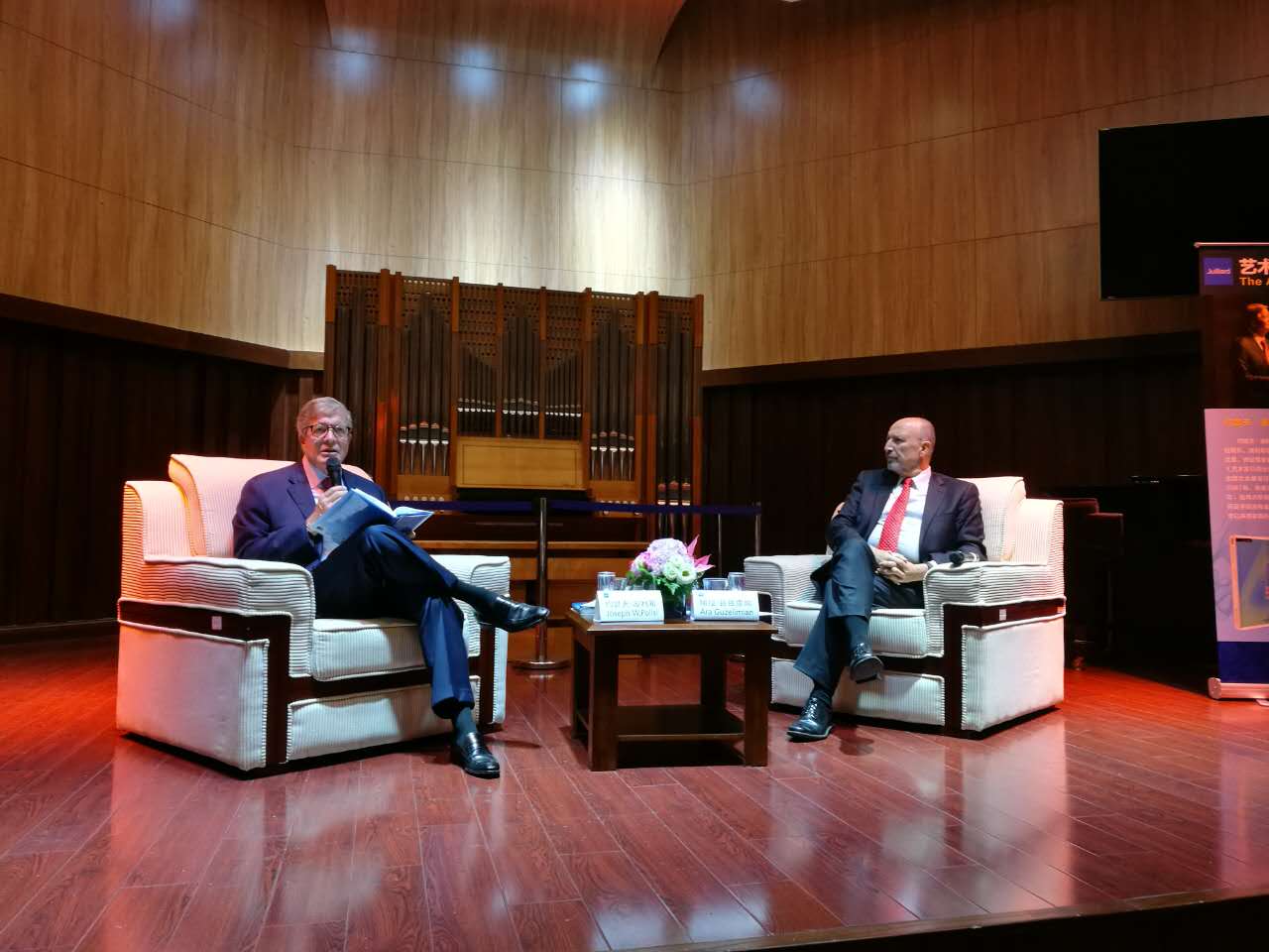 讲座围绕波利希博士的著作《艺术家引领社会》展开,波利希博士与茱莉亚学院教务长阿拉·谷子里绵先生以对话的形式,将茱莉亚学院的办学理念、传统和学院自1905年创立以来至今的发展历程,以及21世纪艺术家的社会定位与责任做了详尽阐述。