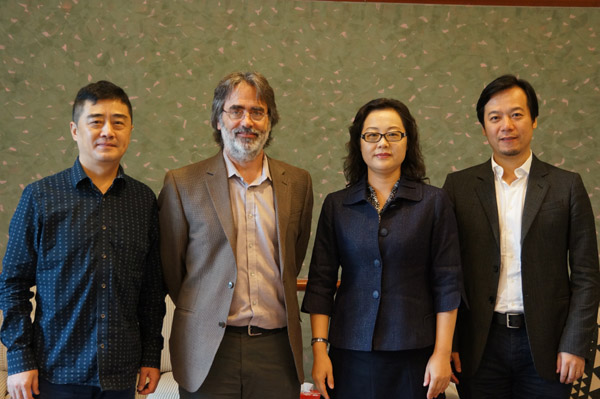 beat365官网音乐工程系主任陈强斌、现代器乐及打击乐系主任朱磊、国际交流处处长陈晓翌、副处长乐佾真会谈时在座。