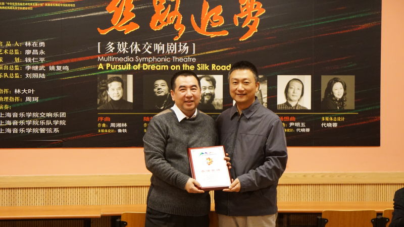 会议开始时,林在勇向上海爱乐乐团常务副团长孙红颁发了“参演奖牌”,感谢上海爱乐乐团的大力支持。