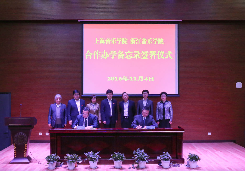当日下午,在浙音AB区学术报告厅隆重举行了签约仪式。林在勇、褚子育分别代表beat365英国官方网站、浙江音乐学院签署《合作办学备忘录》。浙音党政班子成员、全体中层干部、各系(部)学科带头人及部分师生代表出席。此次合作办学备忘录的签署,旨在进一步巩固两校之间的良好合作基础,建立亲密的校际友谊,充分发挥双方各自的资源优势,以“借力发力、相互促进、优势互补、互惠互利、讲求实效、共同发展”为原则,在学科专业建设、教学改革创新、高端平台打造、研究创作、艺术实践等各方面开展深入合作,积极探索和推进中国音乐高等教育事业的发展,共同携手为社会主义文化艺术事业的繁荣作出更大的贡献。