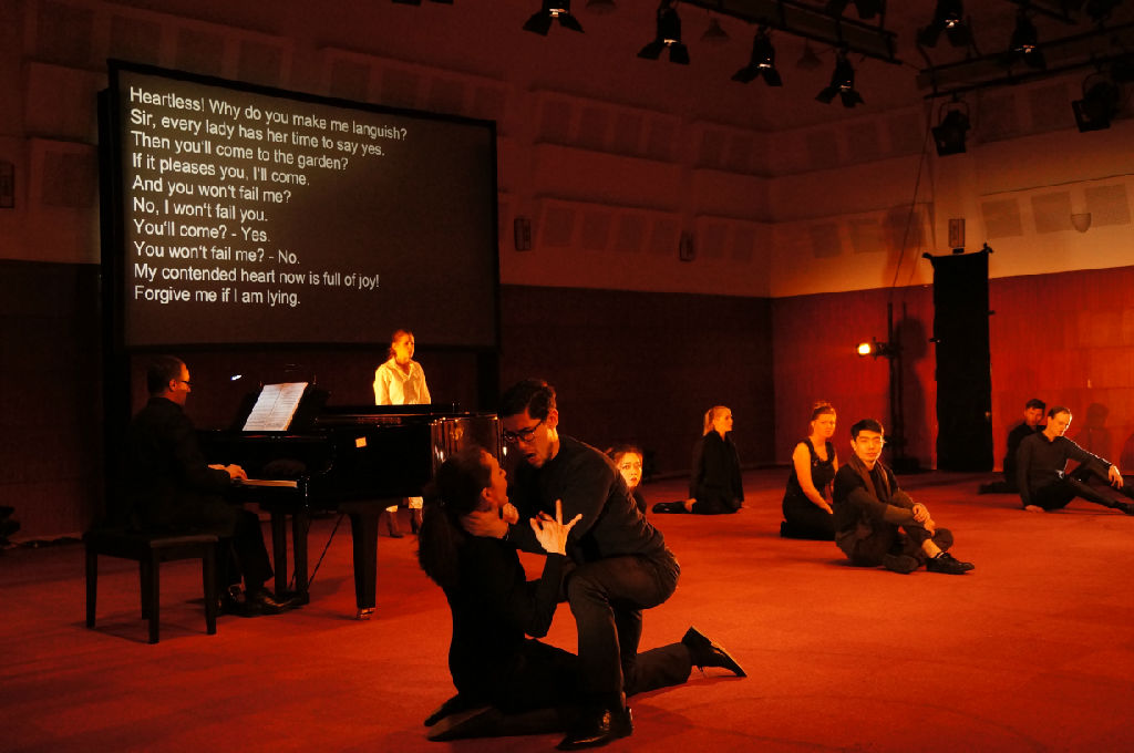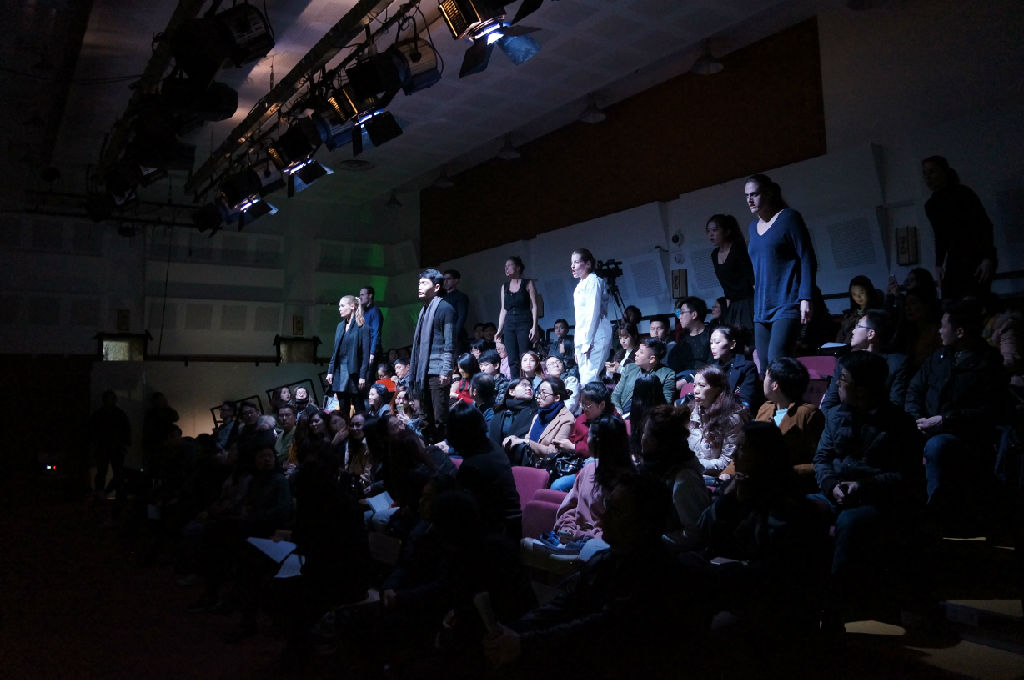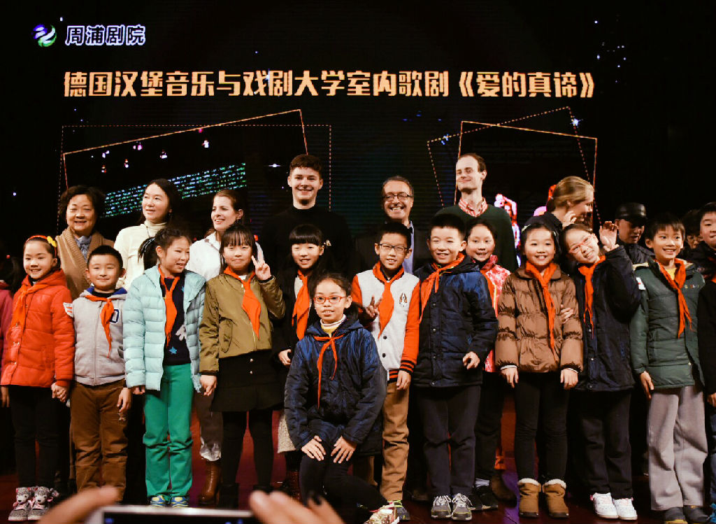 12月7日、8日下午,《爱的真谛》在上音排演中心308进行了演出,观众爆满。演出之后,全剧演员以及该剧艺术总监、汉堡音乐与戏剧大学歌剧系主任菲利普·席梅尔曼教授与观众进行了热烈的互动。很多学生好奇于这个制作原本的出发点,席梅尔曼教授回应说,用最简洁的方式表达人类终极的命题——爱,就是制作这部歌剧的本意。该剧指挥兼钢琴是法斯托·纳尔蒂教授,11位演员均为汉堡音乐与戏剧大学声乐歌剧系在读或毕业生。