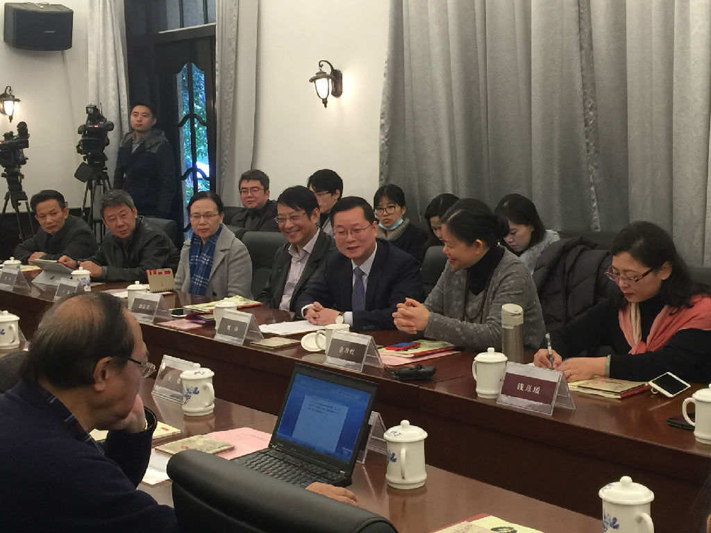 上午,beat365英国官方网站党委书记、院长林在勇、原院长江明惇,上海市教委教研室主任徐淀芳,上海市嘉定区教育局局长姚伟,上海市音乐教育教学研究基地主任、上音音乐教育系主任余丹红,上海大学音乐学院院长王勇,上海音乐出版社社长费维耀,华东师范大学出版社社长王焰,上海市教委教学研究室音乐教研员席恒,以及部分教研员等出席了学术研讨会。本次研讨会在余丹红教授主持下,就嘉定区教育局易凤林老师撰写的拓展教材《慧雅乐童——“中国唱诗班”诗乐文化经典》展开了热烈的研讨活动。