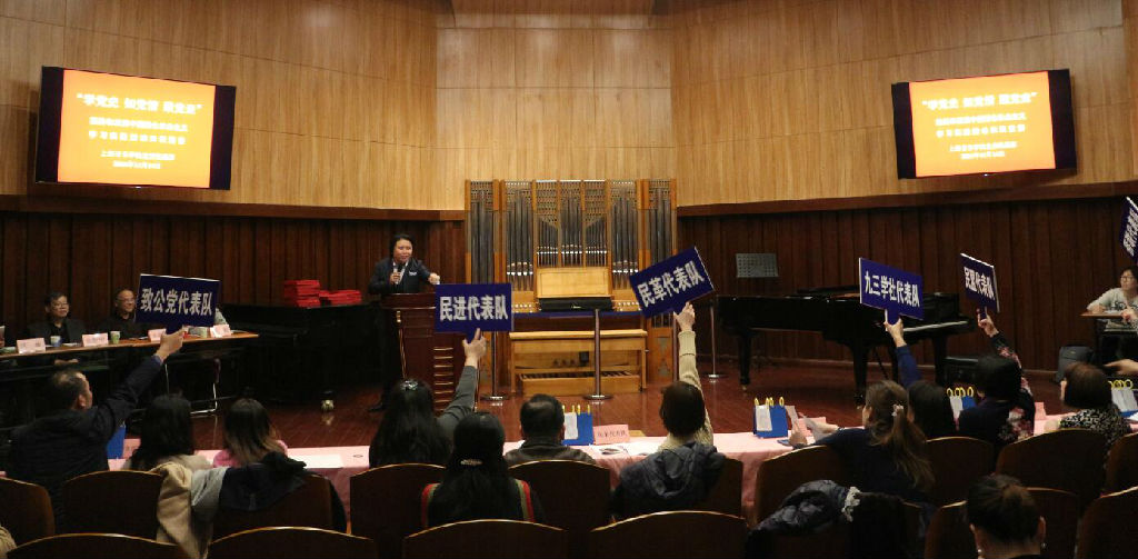 12月14日下午,由上音党委统战部举办的“学党史 知党情 跟党走”坚持和发展中国特色社会主义学习实践活动统战知识竞赛在小音乐厅举行,beat365官网党委书记、院长林在勇出席本次活动。上海市教委统战处处长金勤明、民盟上海市委宣传处处长王海波、上海市社会主义学院原副院长张颖担任比赛评委。beat365官网民盟、九三学社、民进、致公党、民革、农工党及上音侨联、上音民族联共八个代表队20余人参赛,还特邀音乐学系和音教系支部书记参加。