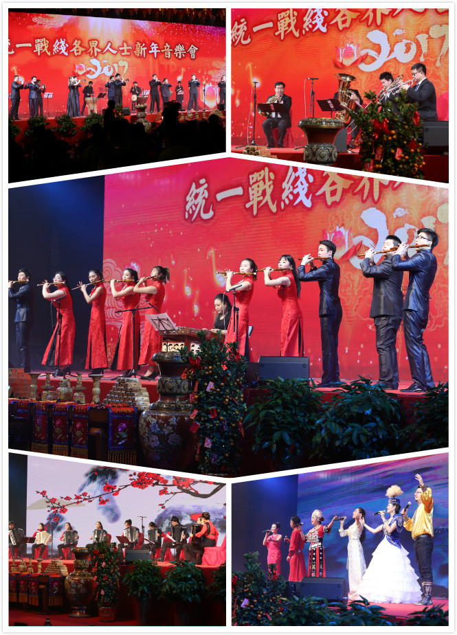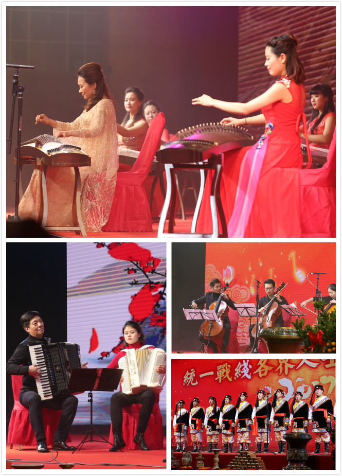 此次音乐会群星云集,阵容强大:有上音民族联会长赵勇、副会长杨学进,民进上音支部主委苏彬,民革上音支部副主委徐达维、民进会员祁瑶、农工党党员陈卫平、民盟盟员唐瑾,以及声歌系教师于丽红、孟锦慧、黄萱,还有上音民族音乐系吹打乐团、上音筝乐团婉媄组合、管弦系Mountain Brass铜管乐队、手风琴乐团、大提琴乐团以及少数民族学生共100多人倾情献演。上音师生们不仅让大家聆听了耳熟能详的少数民族民歌,并倾情演绎世界管弦乐名曲,更带来独具中国音乐魅力的民乐演奏,为各界人士献上诚挚的新年祝福。