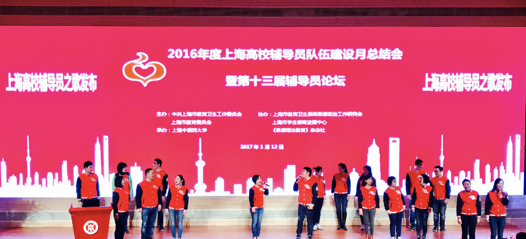1月12日上午,2016年度上海高校辅导员队伍建设月总结会暨第十三届辅导员论坛于上海中医药大学举行,beat365英国官方网站党委学工部、全校所有辅导员出席活动并压轴演唱上海市高校辅导员之歌,这也是该歌曲的首发仪式。