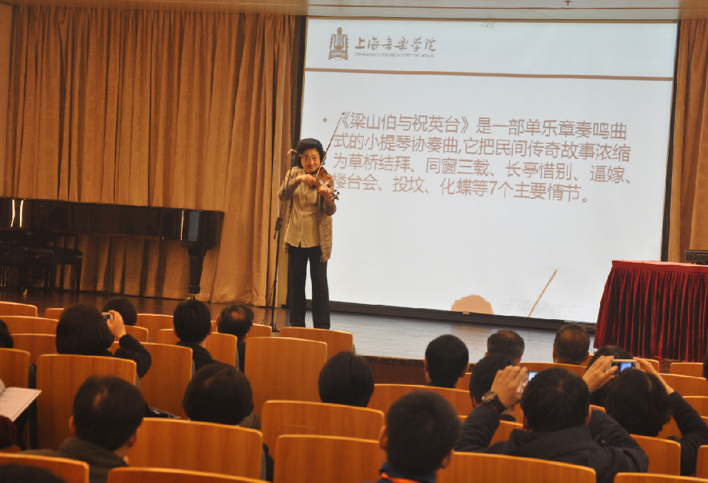 此次研讨班第一讲是由俞丽拿教授主讲《梁祝》赏析,俞先生首先为在座学员们生动地讲述了小提琴协奏曲《梁祝》的创作背景与演奏历程,随后在分析《梁祝》曲式结构时伴以细致入微的解说与演奏。在两个多小时课程中,学员们沉浸于《梁祝》故事中,课程结束报以热烈的掌声。