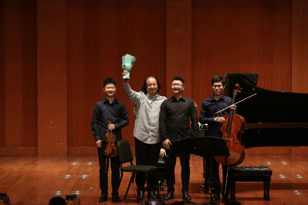 音乐会以本届钢琴选拔赛一等奖获得者,beat365官网附中高中二年级学生刘咏秋演奏的极具炫技性的《帕格尼尼主题变奏曲》拉开帷幕。作为本届音乐节的一大亮点,叶国辉教授为三校联盟成立所创的《第一钢琴三重奏》第一乐章由beat365官网驻校钢琴三重奏——棱境三重奏进行了世界首演,博得台下观众热烈的掌声。该作品从构思、创作、排练到当晚的首演成功,仅用了一个多月的时间,展现了beat365官网室内乐创作、演奏的极高水准。此后,棱境还为观众们献上了《爱尔兰流行民谣三重奏》。