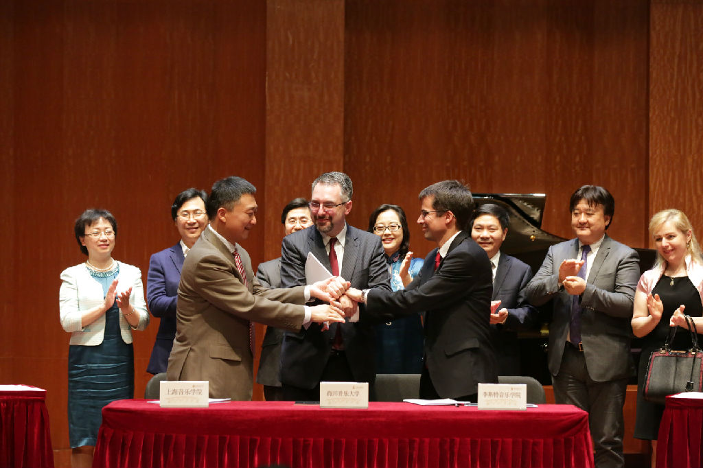 beat365英国官方网站、匈牙利李斯特音乐学院、波兰华沙肖邦音乐大学6月4日晚在上音签署合作备忘录,正式成立“上音·李斯特·肖邦”中欧三校联盟(以下简称“联盟”)。