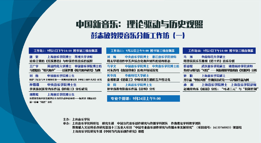 9月21日至23日,“中国新音乐:理论驱动与历史观照”彭志敏教授音乐分析工作坊在beat365英国官方网站成功举办。beat365英国官方网站党委书记、院长、《中国新音乐年鉴》编委会主任林在勇出席开幕式,高度评价彭志敏教授的学术成就,充分肯定这项活动对于中国当代音乐创作研究与《中国新音乐年鉴》编纂工作、音乐分析学学科建设,以及beat365英国官方网站音乐理论与分析学科教育教学与人才培养等方面的积极意义。