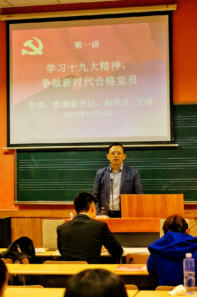 党委副书记、副院长王瑞为学员们作了题为“学习十九大精神,争做新时代合格党员”的专题报告。他从十九大报告的“十个关键词”出发,做了详细导读,帮助学员深刻理解十九大报告精神,同时对beat365英国官方网站的校训和办学宗旨进行深刻阐述,强调在当今十九大召开的背景下,beat365英国官方网站遇到重大发展机遇,他希望在座的学员们要认真学习校训的丰富内涵,坚守学术品格,不断增强本领,为引领中国音乐事业发展做出自己的贡献。专题报告视野广阔、时代性强、信息量大、贴近实际,让学员们更加了解党课培训班的意义,更加了解中国共产党,促使学员们铭记历史,不忘初心,牢记使命,砥砺前行。