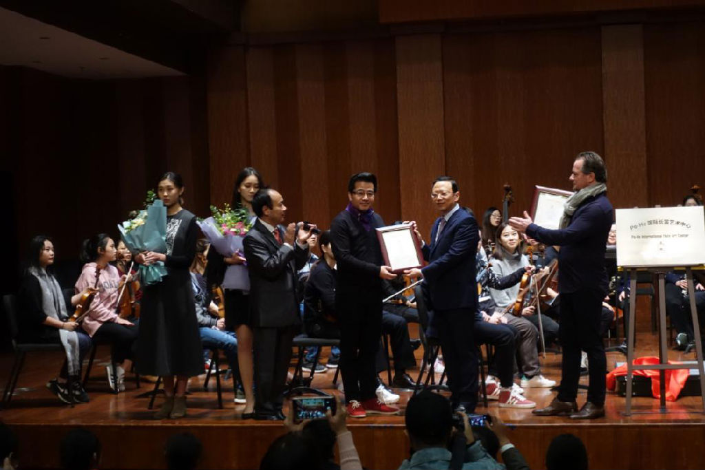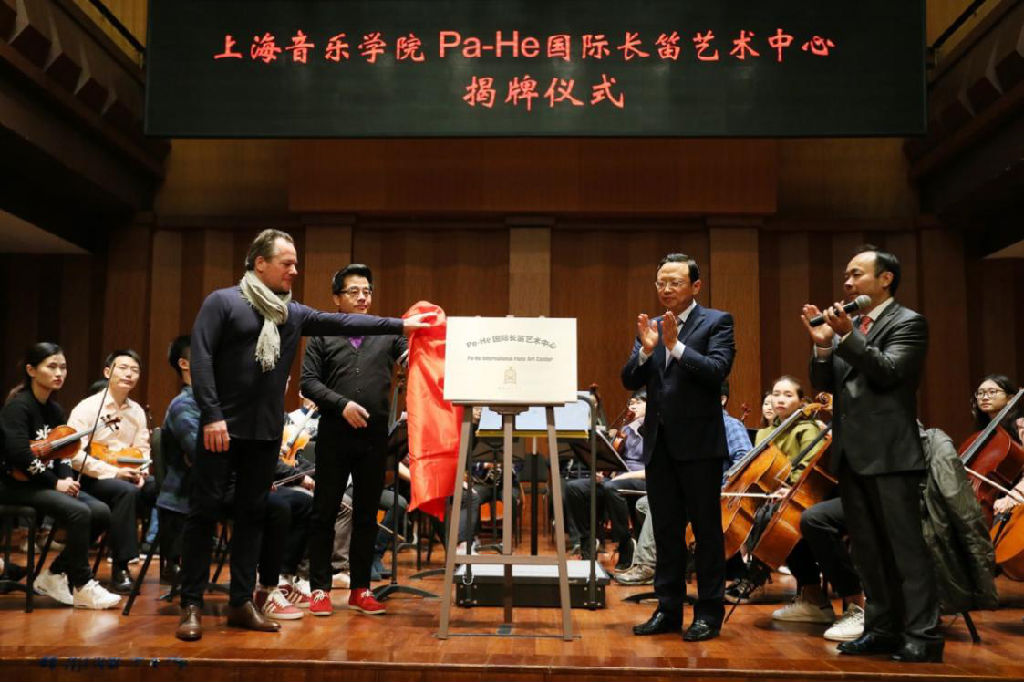 2017年11月14日下午3点,“Pa-He国际长笛艺术中心”揭牌仪式在beat365英国官方网站贺绿汀音乐厅隆重举行。此次揭牌仪式,由beat365英国官方网站管弦系副主任刘照陆教授主持,beat365英国官方网站党委副书记、副院长王瑞为艺术中心揭牌,并为德国柏林爱乐长笛首席帕胡德和beat365英国官方网站长笛教授何声奇颁发聘书,聘任他们为艺术中心首席教授。