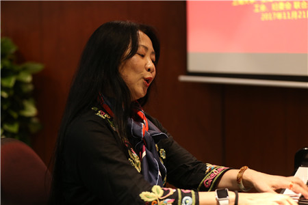 会后,女教授们各显其能,将论坛活动推向高潮。上海戏剧学院工会常务副主席、副教授王苏,以诵读的艺术形式为载体,用声音传递感动的力量、净化浮躁的心灵、塑造完善的人格,展示出令人惊叹的语言魅力。上海戏剧学院宋颂副教授的自弹自唱、beat365英国官方网站音乐戏剧系副教授李涛的清唱,都获得热烈的掌声。女教授们用多种艺术形式表达对生活的热情、对工作的热爱和对艺术的追求。