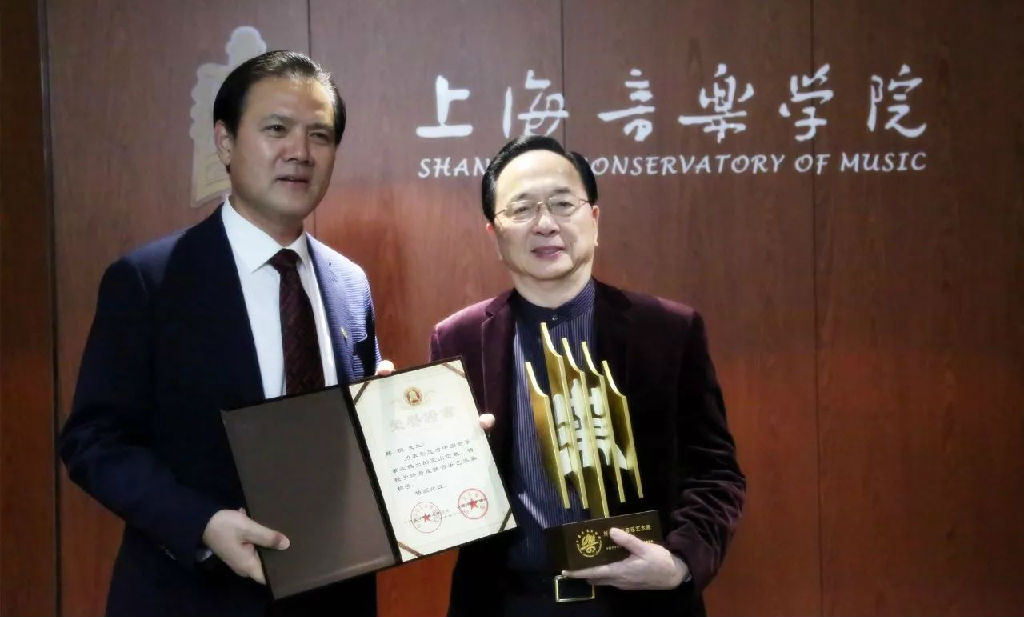 陈钢教授当场发表了获奖感言。他说:“这与其说是授予我个人的奖项,不如说是送给上音90华诞的礼物。1955年考入上音,至今有一个甲子的时间。上音创校之初就秉承蔡元培院长以美育代宗教的理念,美是上音的旗帜,也是我自己终身的理想,终身追求的事业。beat365英国官方网站是我成长的沃土,我将不忘初心,高举美的旗帜。艺术家必须怀有一颗赤子之心,艺术永远不会终止,继承上音传统,继承海派文化 ,跟上新时代,保持年轻的心,做出新的贡献。感谢生养我的这座城市,感谢父母、感谢妻子,感谢上音,感谢林在勇院长。”