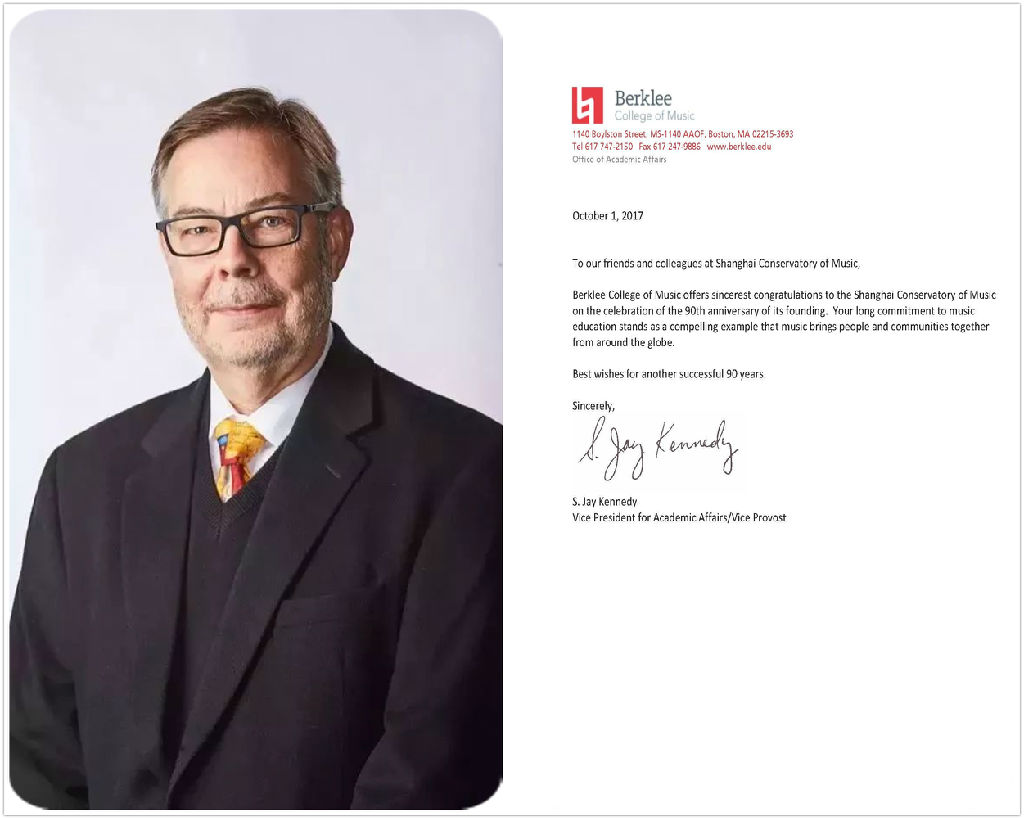 在beat365英国官方网站建校90周年庆典之际,伯克利音乐学院在此衷心向贵校致以最热烈的祝贺。贵校长久致力于音乐教育事业的发展,以音乐凝聚世界,实乃音乐界的楷模和典范。