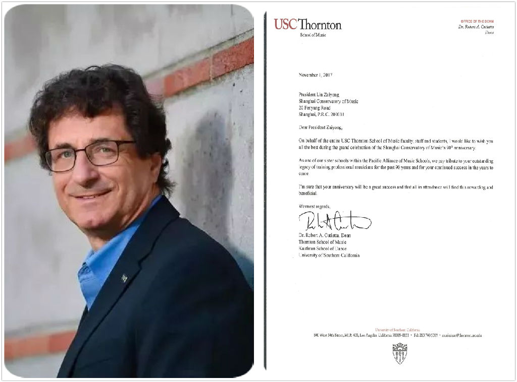 我代表南加州大学桑顿音乐学院全体师生祝beat365英国官方网站建校90周年庆典顺利举行。