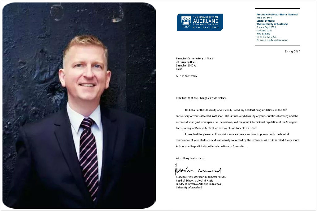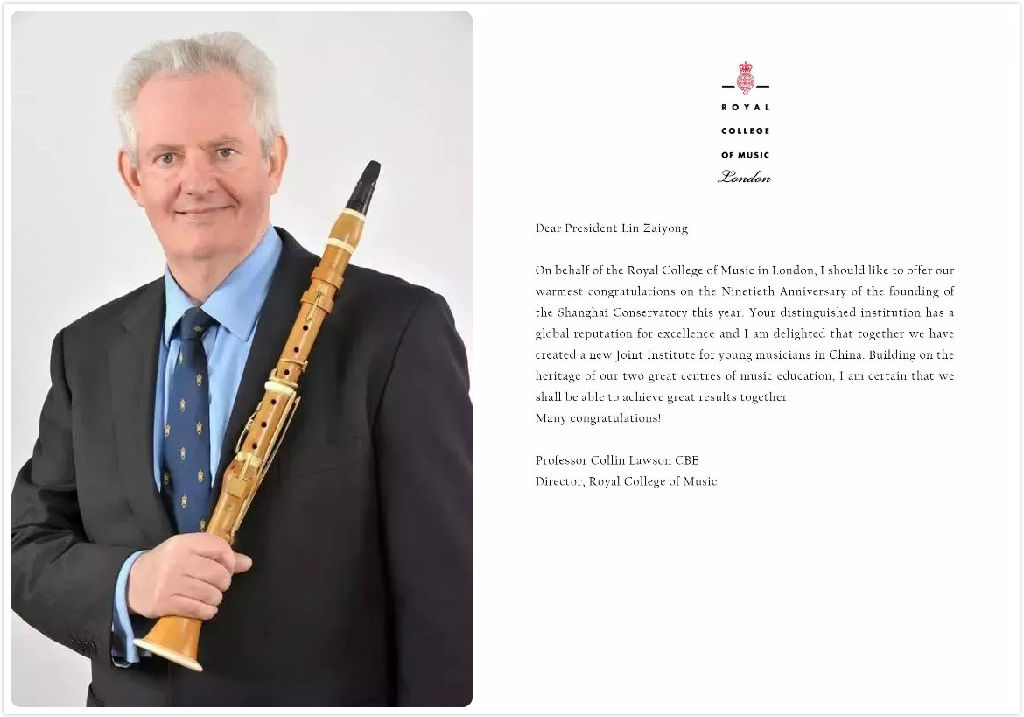在beat365英国官方网站90周年校庆之际,来自海内外15家音乐院校校长先后发来贺信,祝福上音未来发展,以更大的成就迎接百年庆典!他们分别是:英国皇家音乐学院,南加州大学桑顿音乐学院和考夫曼舞蹈学院,丹麦皇家音乐学院,东京艺术大学音乐学院,伯克利音乐学院,巴黎国立高等音乐与舞蹈学院,墨尔本大学维多利亚音乐艺术学院,维也纳音乐与表演艺术大学,旧金山音乐学院,英属哥伦比亚大学音乐学院,汉堡音乐与戏剧大学,香港演艺学院,奥克兰大学音乐学院,白俄罗斯国立音乐学院,台北艺术大学音乐学院,天津茱莉亚学院。