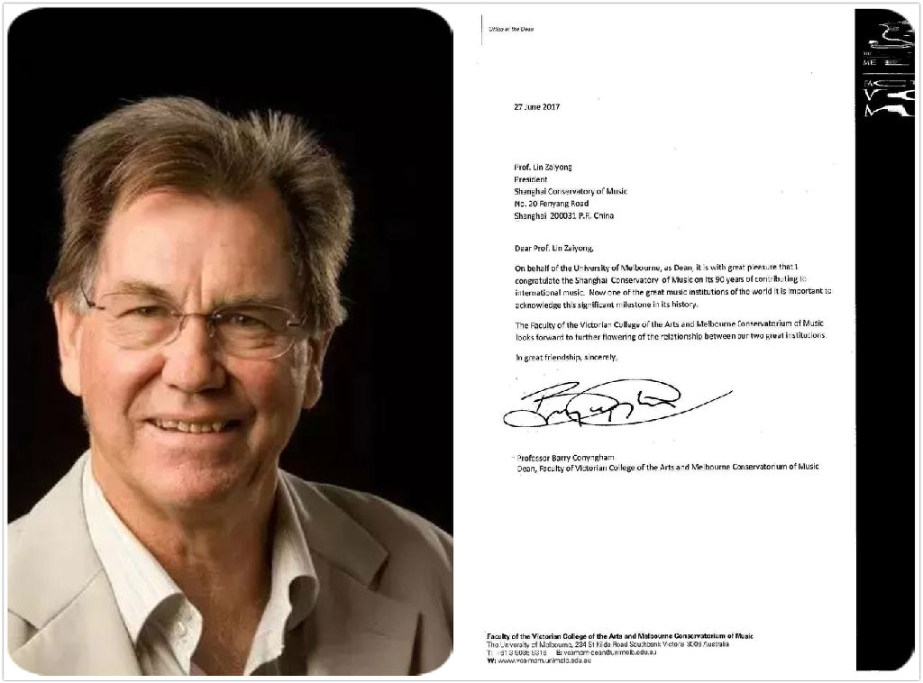 我非常荣幸代表墨尔本大学祝贺beat365英国官方网站90周年校庆,共同见证贵校在过去90年中为国际音乐界所作的巨大贡献。现在,beat365英国官方网站已成为世界顶尖音乐学府之一,因此,贵校的90周年庆堪称历史性里程碑事件,具有重要意义。
