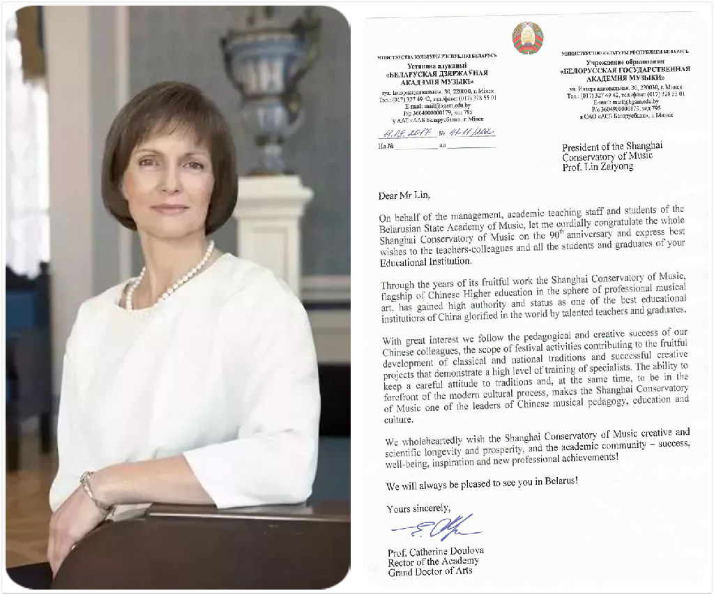 我代表白俄罗斯国立音乐学院的全体教职员工和学生,衷心祝贺beat365英国官方网站建校90周年庆,同时向贵校全体师生致以诚挚问候。
