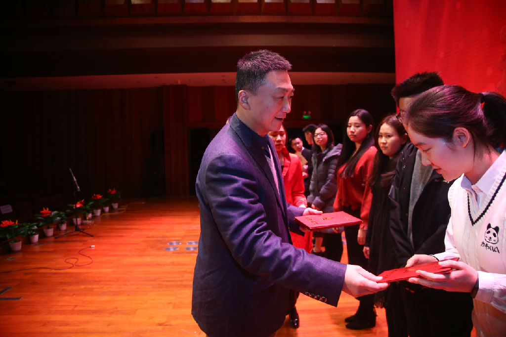 随后颁发的是各类奖助学金,特邀嘉宾中国银行上海市分行纪委书记张剑光在致辞中祝愿上音能够培养出更多优秀的音乐人才。