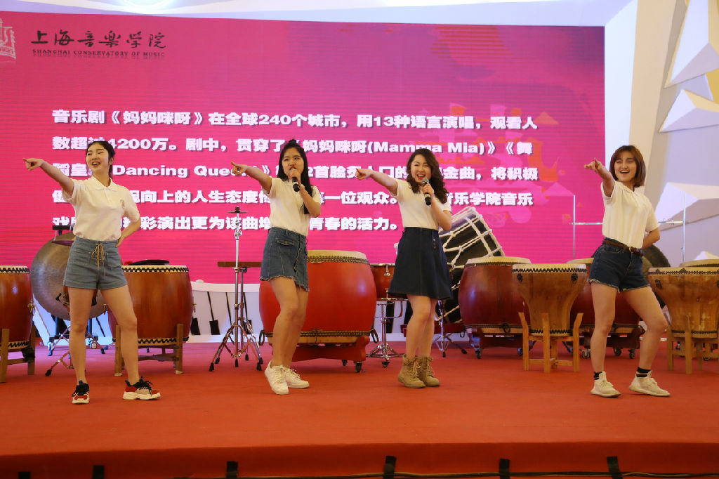 音乐戏剧系带来了音乐剧《妈妈咪呀》选段《Dancing Queen》,一开场就引得现场众多观众驻足观看,富有热情和活力的表演带动了现场的气氛。