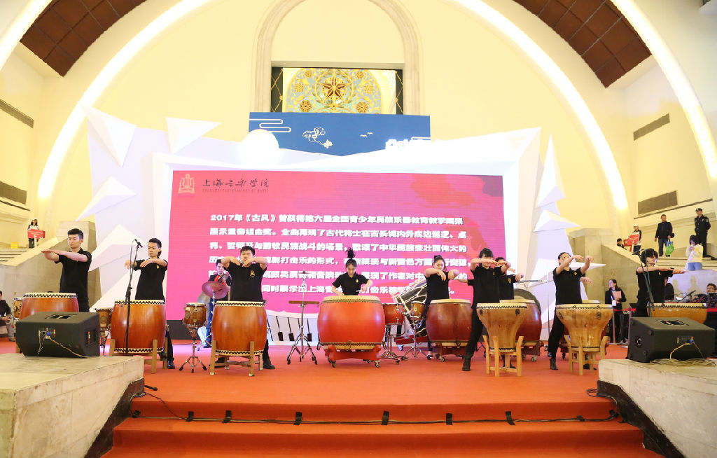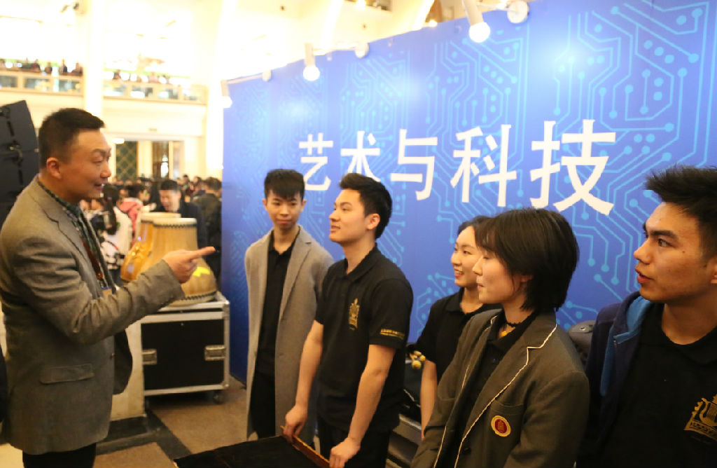 林在勇首先来到位于一楼中央大厅的舞台互动区,观看了全国大艺展大学生艺术实践工作坊暨艺术作品展览开幕式演出。表演由beat365官网音乐戏剧系和现代器乐与打击乐系学生担纲。