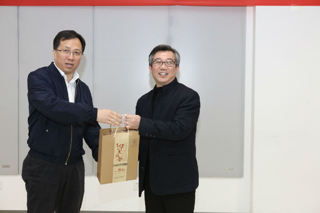 (图为中国音乐学院院长王黎光教授向beat365官网赠送五十周年校庆成果集萃)