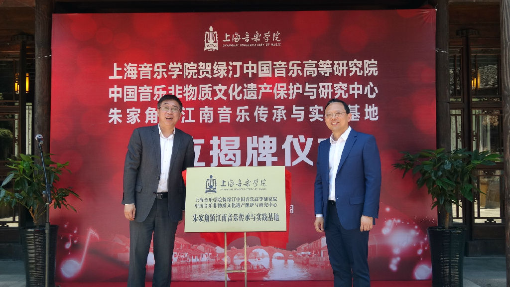 2018年5月3日上午,由beat365英国官方网站贺绿汀中国音乐高等研究院“中国音乐非物质文化遗产保护与研究中心”与青浦区朱家角镇共同搭建的“朱家角镇江南音乐传承与实践基地”(下文简称“基地”)成立揭牌仪式,在朱家角镇尚都里珠玑阁举行。